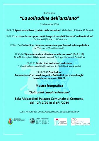 12 DICEMBRE 2018 - CREMONA - LA SOLITUDINE DELL'ANZIANO