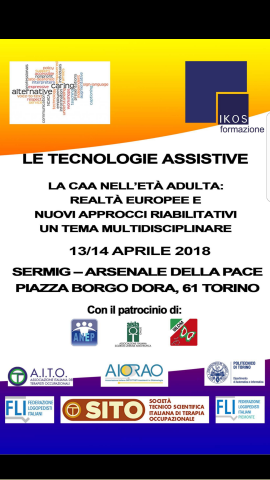 13 e 14 Aprile 2018 Sermig - Arsenale della Pace P.zza Borgo Dora, 61 Torino Le Tecnologie Assistive La CAA nell'età adulta: realtà europee e nuovi approcci riabilitativi un tema multidisciplinare INFO E ISCRIZIONI segreteria@ikossrl.com