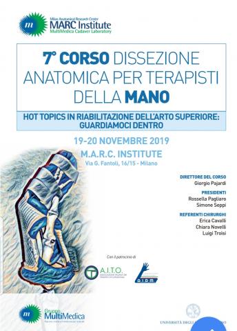 19-20 NOVEMBRE 2019 - Milano - 7 ° CORSO DISSEZIONE ANATOMICA PER TERAPISTI DELLA MANO