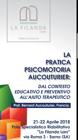 “La pratica psicomotoria Aucouturier: dal contesto educativo e preventivo all’aiuto terapeutico” 21 e 22 aprile 2018 Polo Specialistico Riabilitativo - La Filanda LARS in Via Roma, 3 – Sarno (SA). Per i soci AITO è stata prevista una quota di iscrizione con uno sconto del 10% applicato fino al termine delle iscrizioni. Info e iscrizioni: ecm@eliosengineering.it