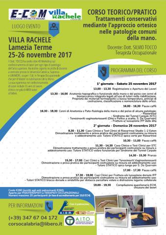 25.26/11/2017, Lamezia Terme - Trattamenti conservativi mediante l'approccio ortesico nelle patologie comuni della mano