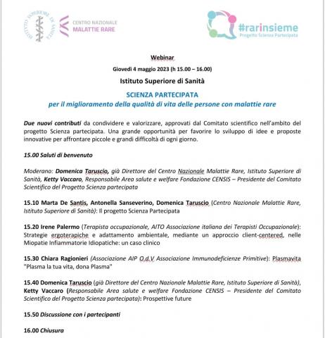 SCIENZA PARTECIPATA per il miglioramento della qualità di vita delle persone con malattie rare