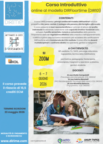 DIRFloortime ed è ricono˦ciuto ˗a ICDʿ In˦titute. Il corso offre tre ˗ocenti