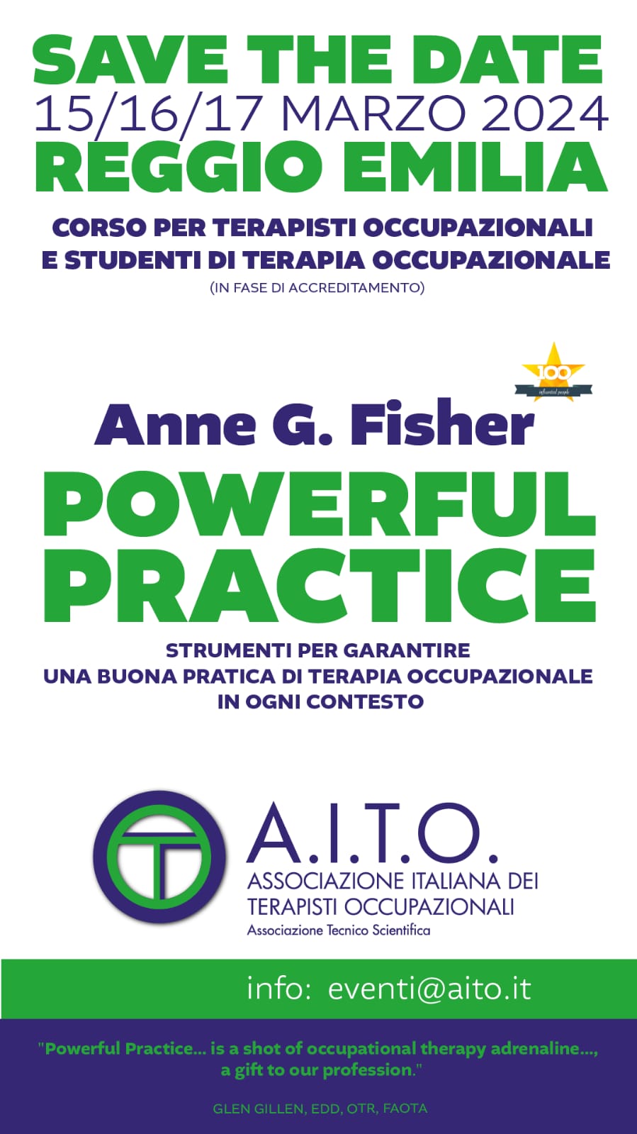 La docente del corso è stata inserita tra " 100 Influential People in Occupational Therapy"