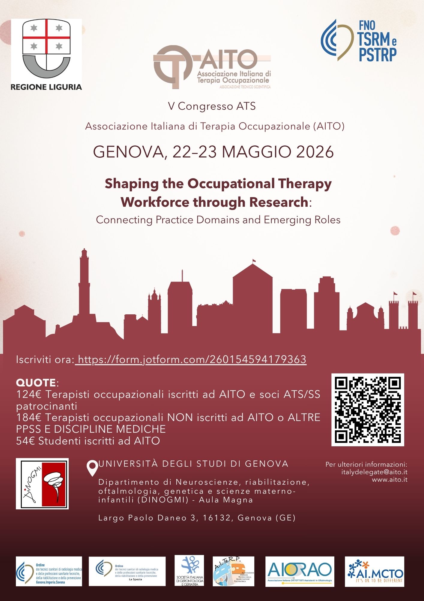 L’obiettivo del convegno è dunque rafforzare il legame tra ricerca, formazione e pratica, promuovendo una cultura professionale capace di anticipare i bisogni emergenti e di contribuire attivamente alle politiche di salute pubblica. In questa prospettiva, il terapista occupazionale assume un ruolo strategico non solo nel trattamento, ma anche nella promozione del benessere, nella prevenzione e nell’inclusione sociale, diventando parte integrante di un sistema sanitario moderno, interprofessionale e orientato al valore.