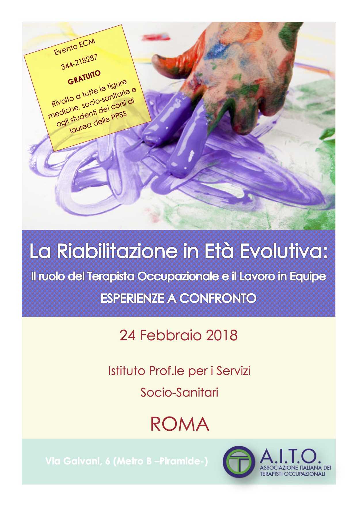 24 Febbraio 2018 - Roma - La Riabilitazione in Età Evolutiva: il ruolo del Terapista Occupazionale e il lavoro di Equipe - ESPERIENZE A CONFRONTO