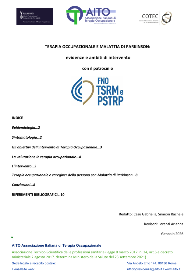 AITO (2026) - Terapia occupazionale e malattia di Parkinson: evidenze e ambiti di intervento
