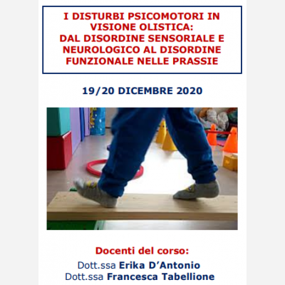 19 - 20 dicembre 2020 - I DISTURBI PSICOMOTORI IN VISIONE OLISTICA: DAL DISORDINE SENSORIALE E NEUROLOGICO AL DISORDINE FUNZIONALE NELLE PRASSIE