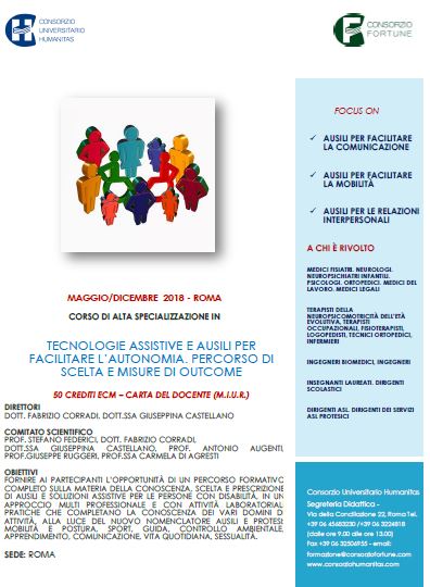 Roma - maggio/dicembre 2018 - TECNOLOGIE ASSISTIVE E AUSILI PER FACILITARE L'AUTONOMIA. PERCORSO DI SCELTA E MISURE DI OUTCOME
